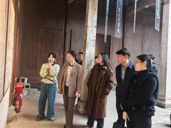 活动中,首先到湖里村章氏宗祠,聆听讲解员介绍宗祠历史、建筑特色及章氏家族族规家训;随后前往伏岭村家风家训陈列馆,通过文字、图片展陈,了解各姓氏家族经典古训。在小镇会客厅,大家借助沙盘模型,察看伏岭镇发展规划、产业布局,重点了解该镇依托徽文化打造特色文旅产业,构建“党建引领、文化赋能、群众参与”治理模式的实践路径。