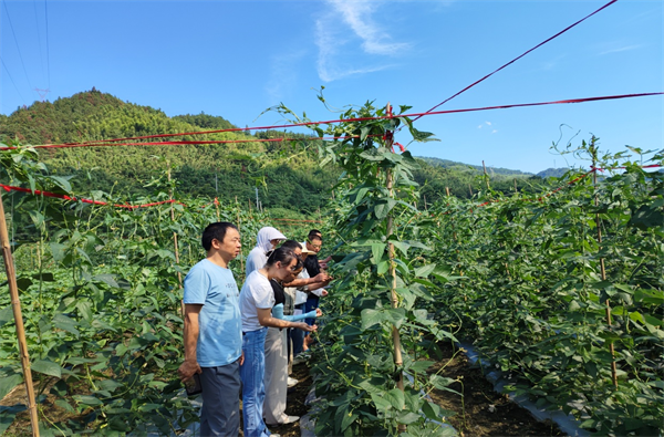 时下正值豇豆采收上市季节,为有效解决豇豆农药残留问题,守护好群众“舌尖上的安全”。2023年7月12日,民盟绩溪基层委组织盟员赴伏岭、家朋、金沙等地指导菜农豇豆安全生产。