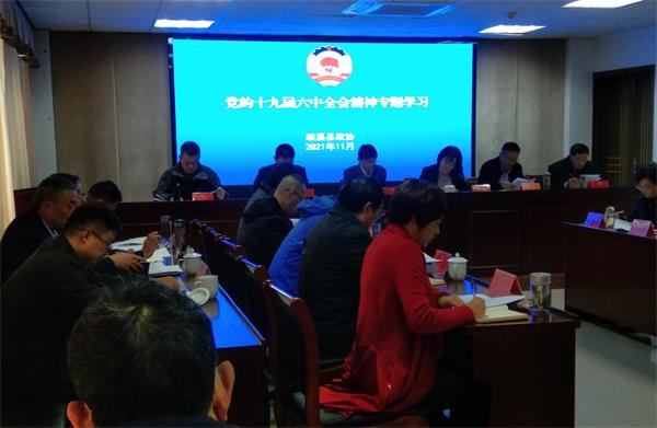 会议集中学习了党的十九届六中全会精神。许晓辉在讲话中指出,要深刻认识全会的重大意义,切实把思想和行动统一到以习近平同志为核心的党中央决策部署上来。把学习好、宣传好、贯彻好党的十九届六中全会精神特别是习近平总书记重要讲话精神,作为当前和今后一个时期的重大政治任务。要对照党的十九届六中全会及省、市、县党代会部署要求,把准政协履职结合点和切入点,以实际行动拥护“两个确立”、做到“两个维护”,以高质量履职尽责迎接党的二十大胜利召开。