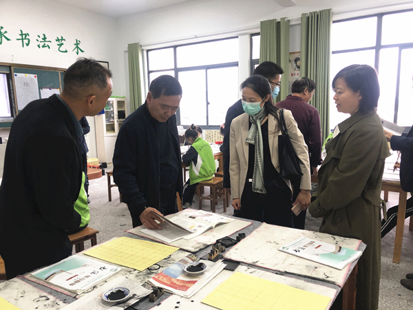 10月28日下午,宣城市政协副主席、市书法教育工作督导组组长宦朝东,宣城市政协文教卫体委主任张宣标等一行7人到我县开展小学书法教育工作调研。县政协副主席周斐、县教体局局长程云广等陪同调研。